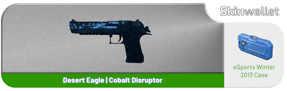 Out of the blue – an uncanny Deagle skin. A cobalt gem in the crown of eSports 2013 Winter case. Same as the previously mentioned skin, it only occurs in Factory New, Minimal Wear and Field-Tested variants, so even the worst wear looks pretty decent. The prices on these are quite varied. You can get a standard version for anything between $16 and $30, whereas StatTraks are stretched between $49 and $90. Plus, there’s quite a lot of Steam listings available for it.